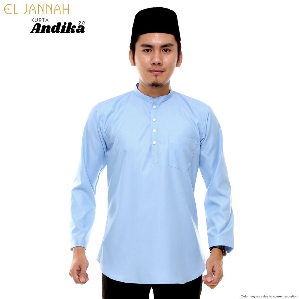 Kurta Men Andika 2 0 Baby Blue Kurta Lelaki Biru Lembut Lengan Panjang Exclusive Cekak Musang Button Cotton Selesa Shopee Malaysia